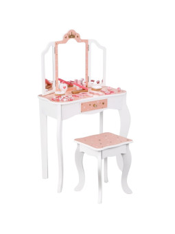 Drewniana toaletka z akcesoriami dla dzieci od Woopie Green to niezwykle urocza i dopracowana w każdym szczególe zabawka, która przenosi dzieci w świat wyobraźni, piękna i kreatywnej zabawy. Zaprojektowana z myślą o najmłodszych miłośniczkach stylu i estetyki, stanowi nie tylko piękny mebel do pokoju, ale również narzędzie wspierające rozwój emocjonalny, społeczny i manualny dziecka. Toaletka zachwyca eleganckim designem inspirowanym klasycznymi meblami dorosłych – ma kształt delikatnego biureczka z potrójnym lustrem, szufladką na drobiazgi i wygodnym stołeczkiem dopasowanym do wzrostu dziecka. Całość wykonana jest z wysokiej jakości drewna,w odcieniach różu, bieli i złota.Trzyczęściowe lustro z ruchomymi skrzydłami umożliwia przeglądanie się z różnych stron, a szeroki blat zapewnia dużo miejsca na wszystkie niezbędne dodatki. W zestawie znajduje się również bogaty komplet akcesoriów, dzięki którym zabawa staje się jeszcze bardziej realistyczna.