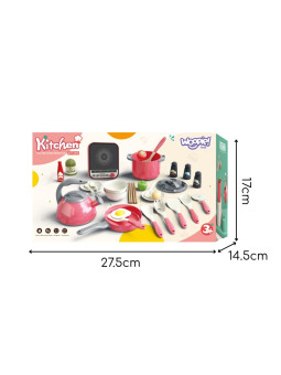 WOOPIE Zestaw Małego Kucharza Indukcja Garnki Patelnia Czajnik Różowy 30el.
