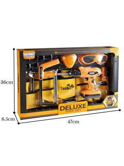Zestaw Narzędzi Małego Majsterkowicza marki WOOPIE to kompletny zestaw narzędzi do zabawy w budowę:, okulary ochronne, pas na narzędzia, wkrętarka zasilana bateriami oraz narzędzia i elementy konstrukcyjne pobudzają wyobraźnię i zachęcają do twórczej zabawy w majsterkowanie. Realistyczne efekty zabawek oraz solidne dodają autentyczności i zapewniają długie godziny zabawy.