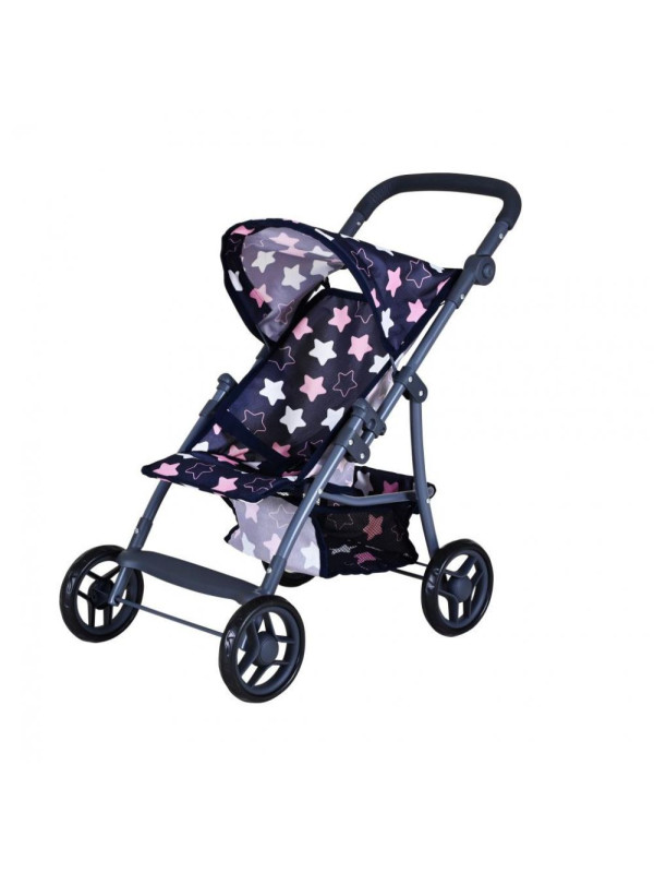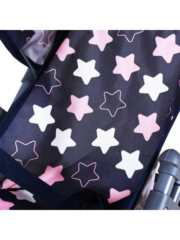 Zwraca uwagę uroczy wzór w białe i różowe gwiazdki na granatowym tle. Regulowany daszek chroni lalkę przed słońcem i wiatrem. Dzięki zastosowaniu praktycznych pasów bezpieczeństwa zabawka zawsze pozostanie na swoim miejscu. Co więcej, lekka, ważąca około 2 kg spacerówka jest wyposażona w praktyczną siatkę na zakupy, dzięki której dziecko może przewozić wszystkie niezbędne akcesoria, takie jak: ubranka, butelka, smoczek, czy też kocyk.