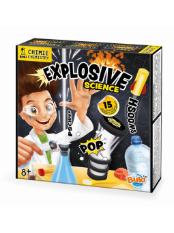 Odkryj 15 zabawnych, wybuchowych eksperymentów: bombę, gejzer, rakietę...Zestaw zawiera okulary ochronne orazpiankowe ochraniacze aby przeprowadzićeksperymenty w całkowicie bezpieczny sposób. W zestawie:- okulary ochronne- miarki i inne akcesoria- strzykawka- soda oczyszczona- kwasek cytrynowy- czerwony barwnik- złoty brokat- piankowe, okrągłe ochraniacze- instrukcja krok po kroku. Wiek: +8 lat Wymiary opakowania: 30x7x30 cm.