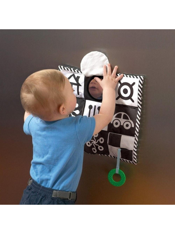 Zabawka dla niemowląt - mata edukacyjna marki Manhattan Toy spełnia wiele rozwojowych funkcji. Kontrastowe kolory stymulują zmysł wzroku niemowlaka; lustro wpływa na rozwój emocjonalny; piszczałki, grzechotki, elementy szeleszczące, r&oa