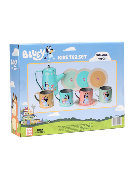 Bluey i jej przyjaciele zapraszają na zabawną herbatkę z tym kolorowym zestawem do herbaty. Różnorodne pastelowe kolory oraz urocze ilustracje rozwijają wyobraźnię Twojego dziecka i sprawiają, że zabawa jest jeszcze lepsza. Ten komplet naczyń zawiera: cztery kubki różnego koloru z innymi ilustracjami na każdym, cztery spodki w różnych kolorach i niebieski dzbanek z przykrywką. Zestaw zaprasza Twoje dziecko do odgrywania ról i zdobywania nowych doświadczeń w świecie Bluey.