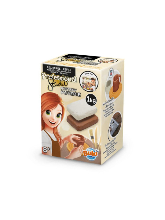 Uzupełniający zestaw gliny do zabawy na kole garncarskim.Dzięki niemu można wykonać wiele ciekawych projektów, jak kubki, miseczki.Zestaw zawiera:- 0,5 kg gliny jasnej- 0,5 kg gliny brązowej Glina schnie na powietrzu. Latem suszenie trwa 2-3 dni, a zimą 3-5 dni. Idealne do zabawy z BUKI Professional Studio KOŁO GARNCARSKIE 5426 Link do filmiku instruktażowego:https://www.youtube.com/watch?v=CHV9gV3tAuU Wiek: +8 lat Wymiary opakowania: 10x14x6,5 cm