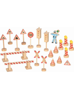 Znaki drogowe z drewna do zabawy dla dzieci Zestaw 21 szt Policjant Ole Goki